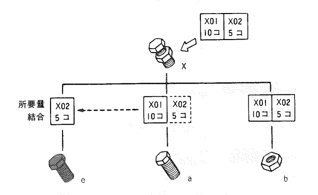 このように、一連番号による設変では、各品目の所要量が、どの製番から要求されたものかを示す内訳が必要となる。これは一般に所要量結合といわれ、各品目の所要量の源泉を示すものである。しかし、このような所要量結合は、莫大なデータ量になり、小型コンピュータやオフィスコンピュータではこれを維持することは能力的に難しい。